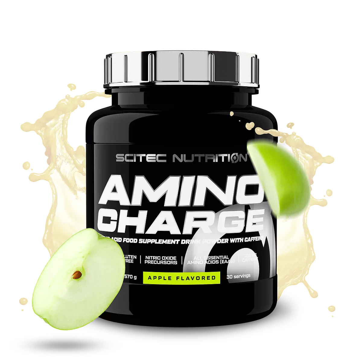Apple: L-Glutamine 16%, L-Leucine 16%, L-Citrulline 16%, L-Valine 7,9%, L-Isoleucine 7,9%, zuren (appelzuur, citroenzuur), L-Arginine HCl 5,3%, L-Tyrosine 5,3%, aroma’s, L-Lysine HCl 2,6%, zout, L-Histidine 1,3%, L-Threonine 1,3%, L-Phenylalanine 1,3%, L-Methionine 1,3%, zoetstoffen (sucralose, acesulfaam-K), emulgator [lecithinen (soja)], zuurteregelaar (kaliumfosfaten), L-Tryptofaan 0,5%, groene thee (Camellia Sinensis) bladextract, antiklontermiddel (magnesiumzouten van vetzuren), watervrije cafeïne 0,5%.
